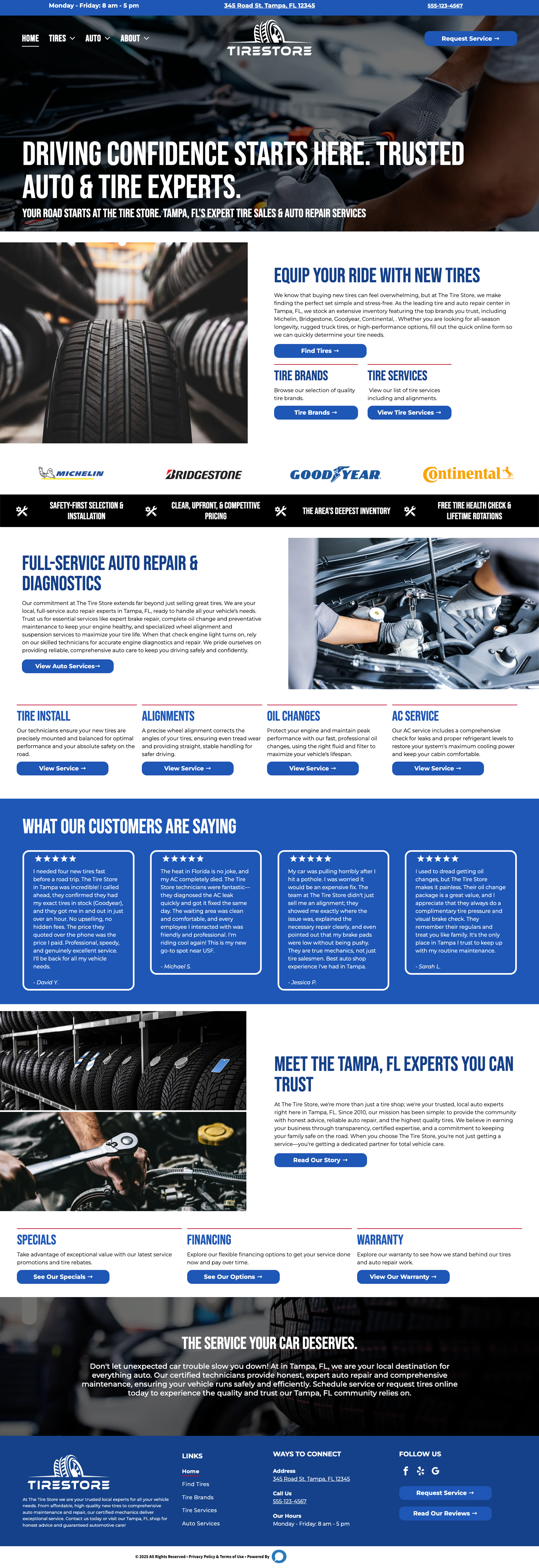 Explore our website designs made for shops specializing in tires and tire-related services. Each layout is ready for you to add the Tire Connect product, showcase your inventory, highlight services like rotations, repairs, and alignments, and make it easy for customers to schedule appointments or shop online. Responsive and professional, these designs help your business stand out and drive more sales.
